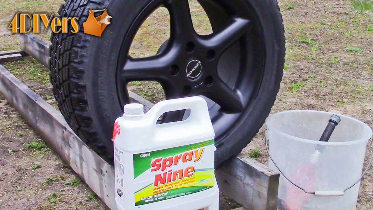 • -using Spray Nine in a spray bottle, apply to the surface of the wheel and tire