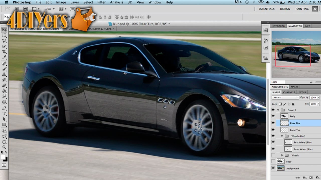 • select any other portions of the image which you want to add motion blur to