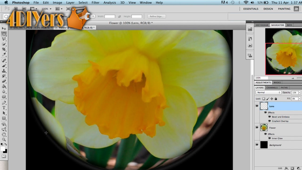 • double click on the "flower" layer, select inner glow, select the color as black, blend mode to normal, opacity to 100%, size to 50%, choke to 0%, ranger to 50%, jitter to 0%